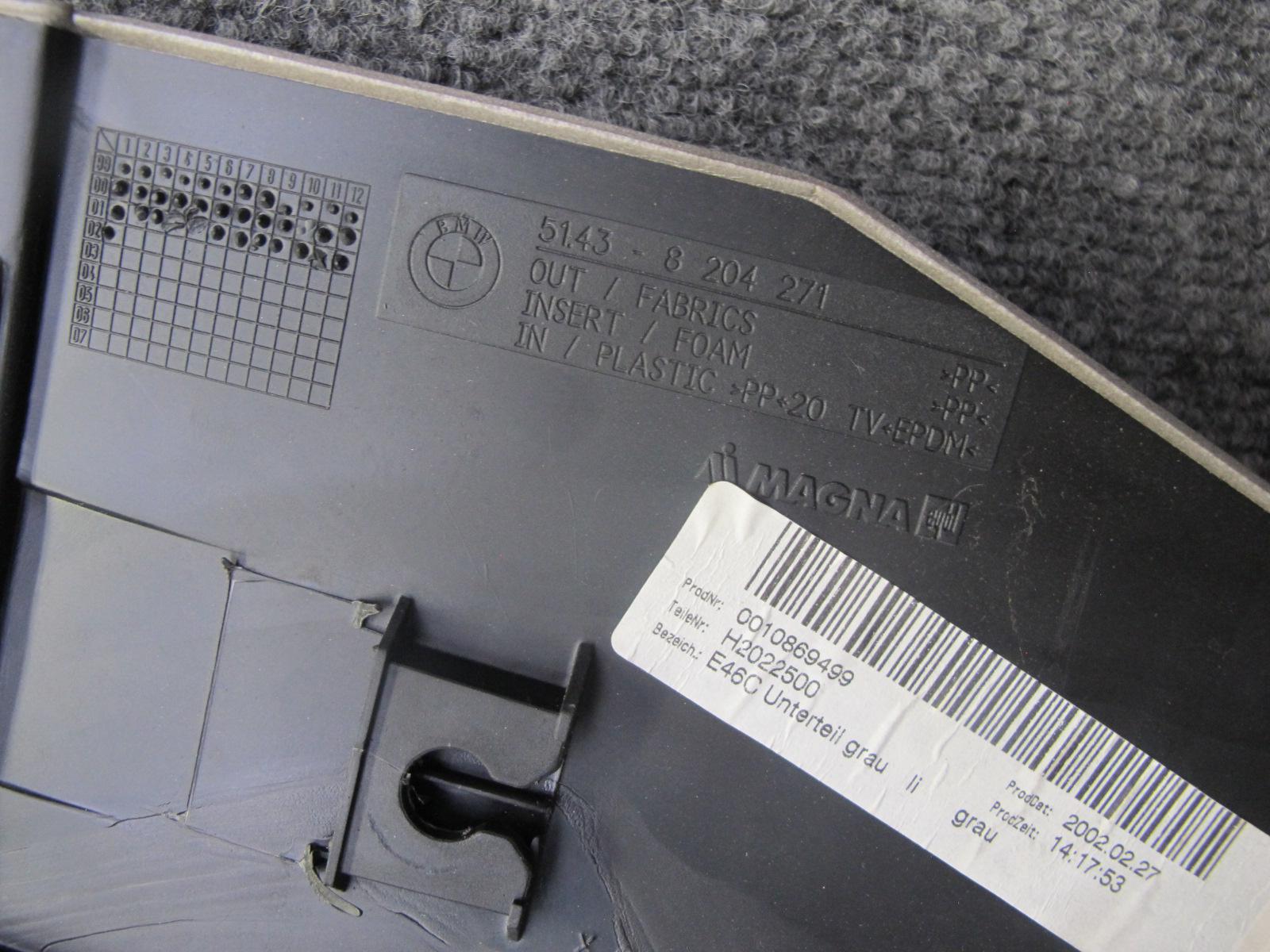 01-03 BMW E46 3-SERIES Convertible Rear Quarter Interior Trim Cover Panel OEM