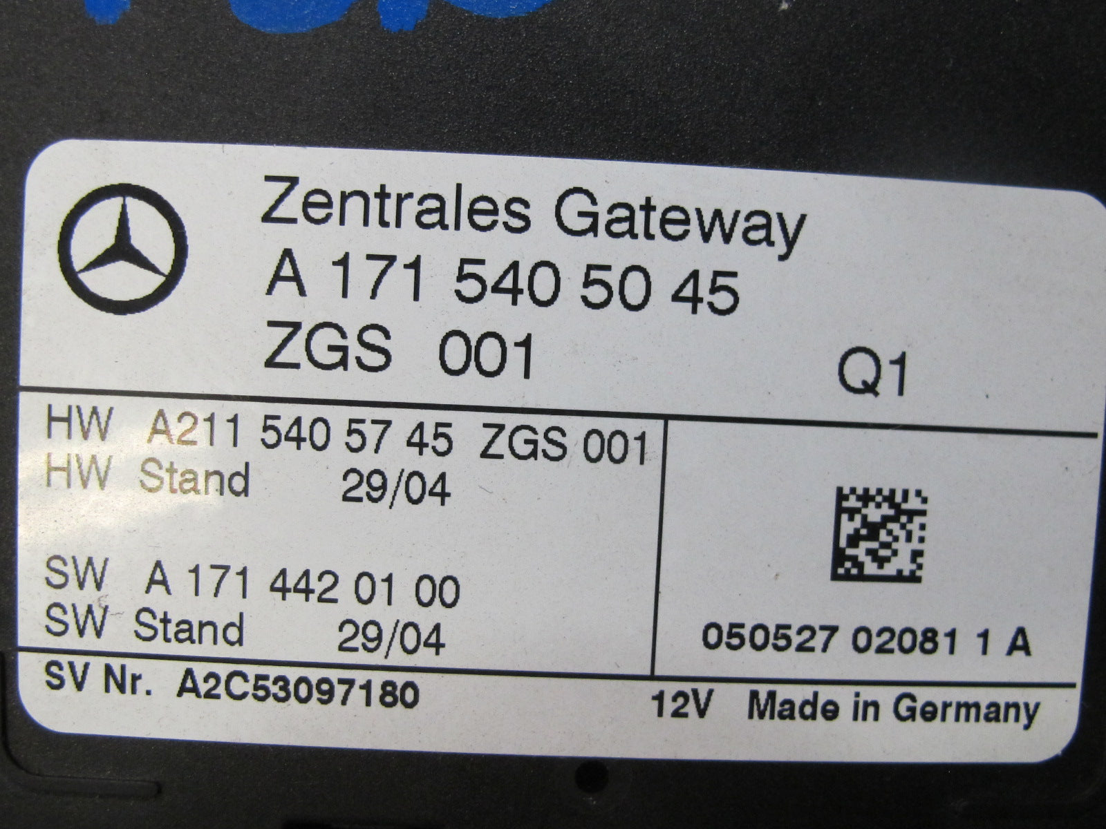 05-11 Mercedes R171 Slk-class Central Gateway Control Module 1715405045