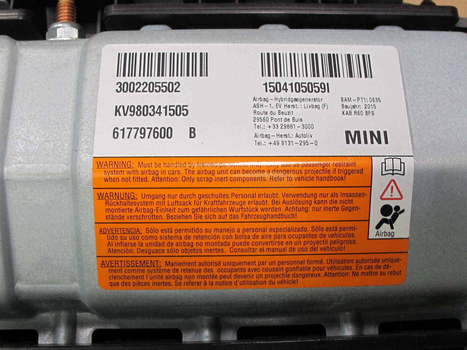 11-16 MINI R60 COUNTRYMAN FRONT RIGHT PASSENGER SIDE UNDER DASH KNEE SRS AIRBAG OEM