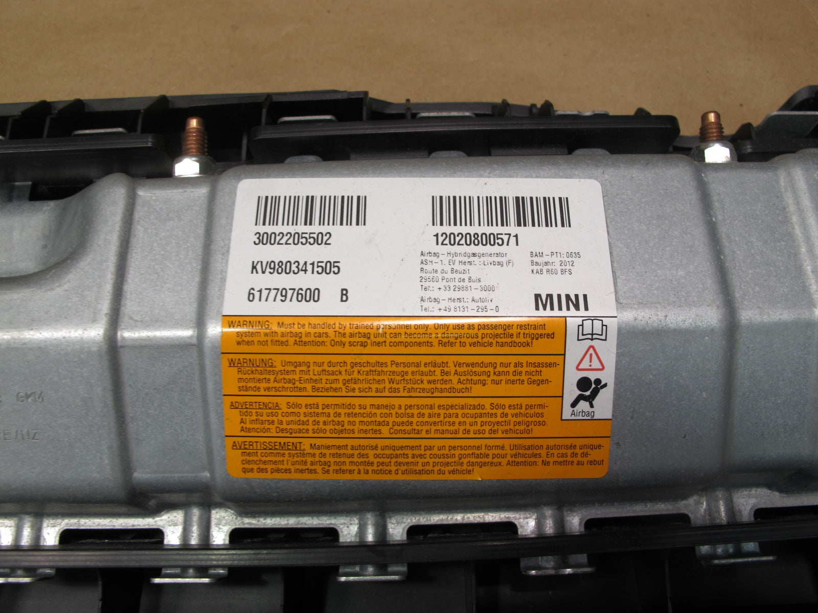 11-16 MINI R60 COUNTRYMAN FRONT RIGHT PASSENGER SIDE UNDER DASH KNEE SRS AIRBAG OEM