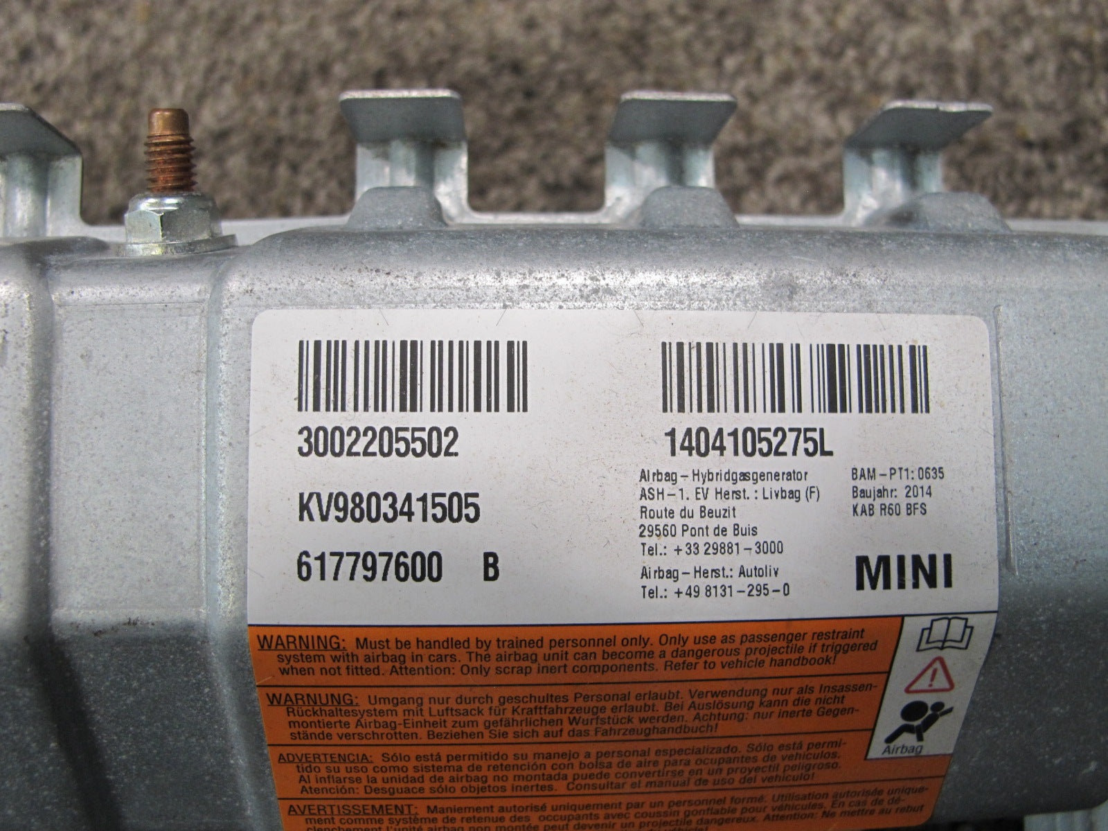 12-16 MINI COOPER S R60 R61 FRONT RIGHT PASSENGER SIDE UNDER DASH KNEE SRS AIRBAG OEM
