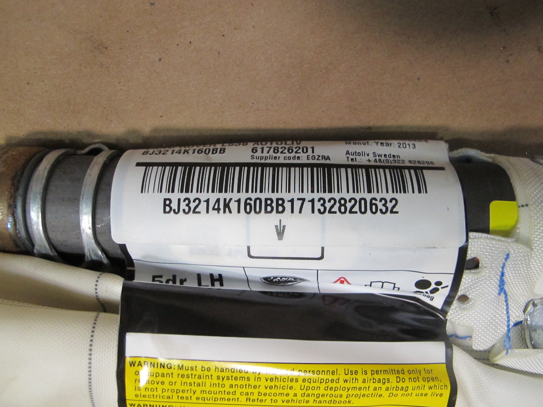 12-18 RANGE ROVER EVOQUE LEFT DRIVER SIDE ROOF SRS AIRBAG BJ3214K160BB OEM