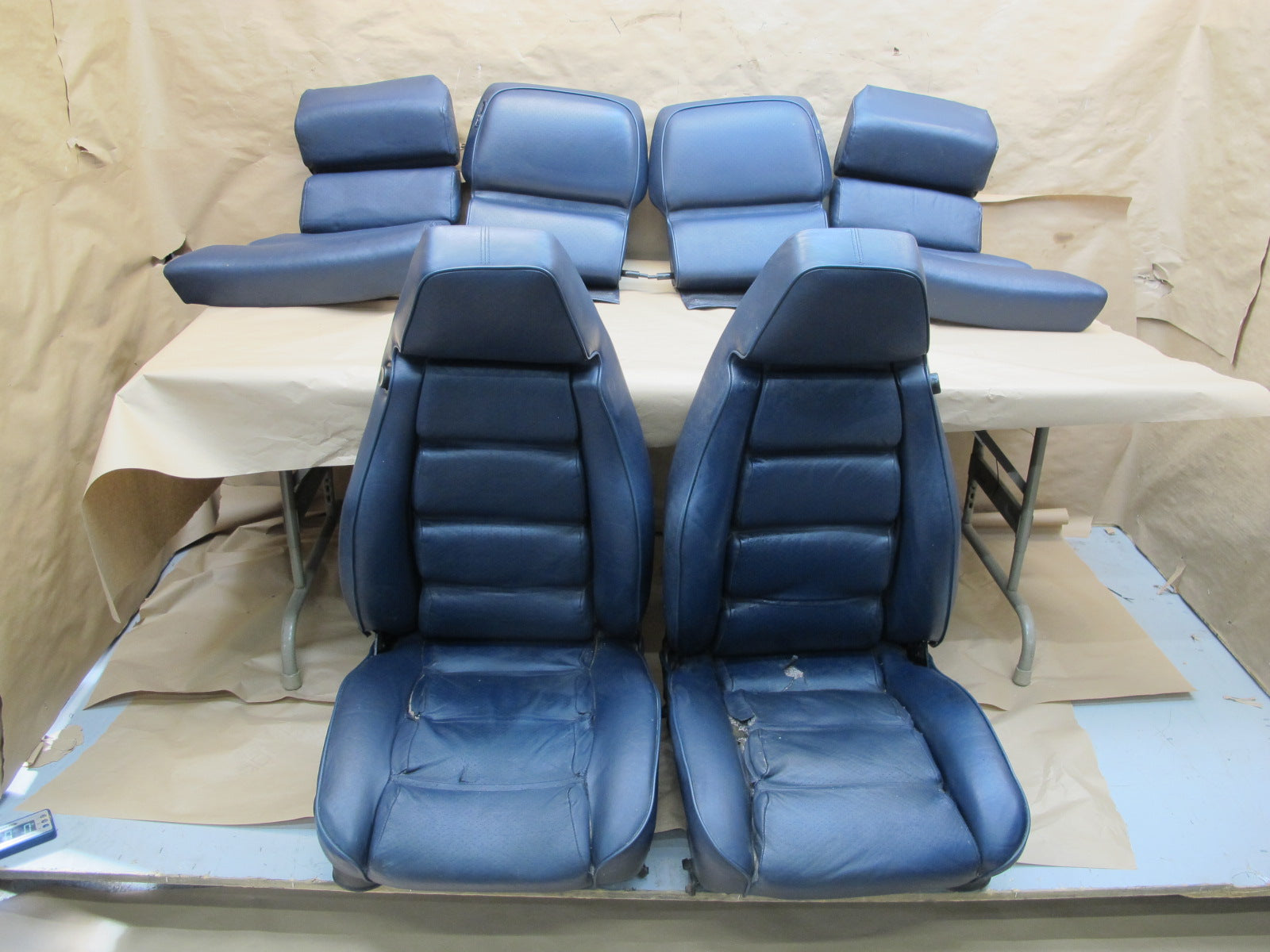 1983-1984 Porsche 928 S Front & Rear Left Right Side Seat Leather Blue Set