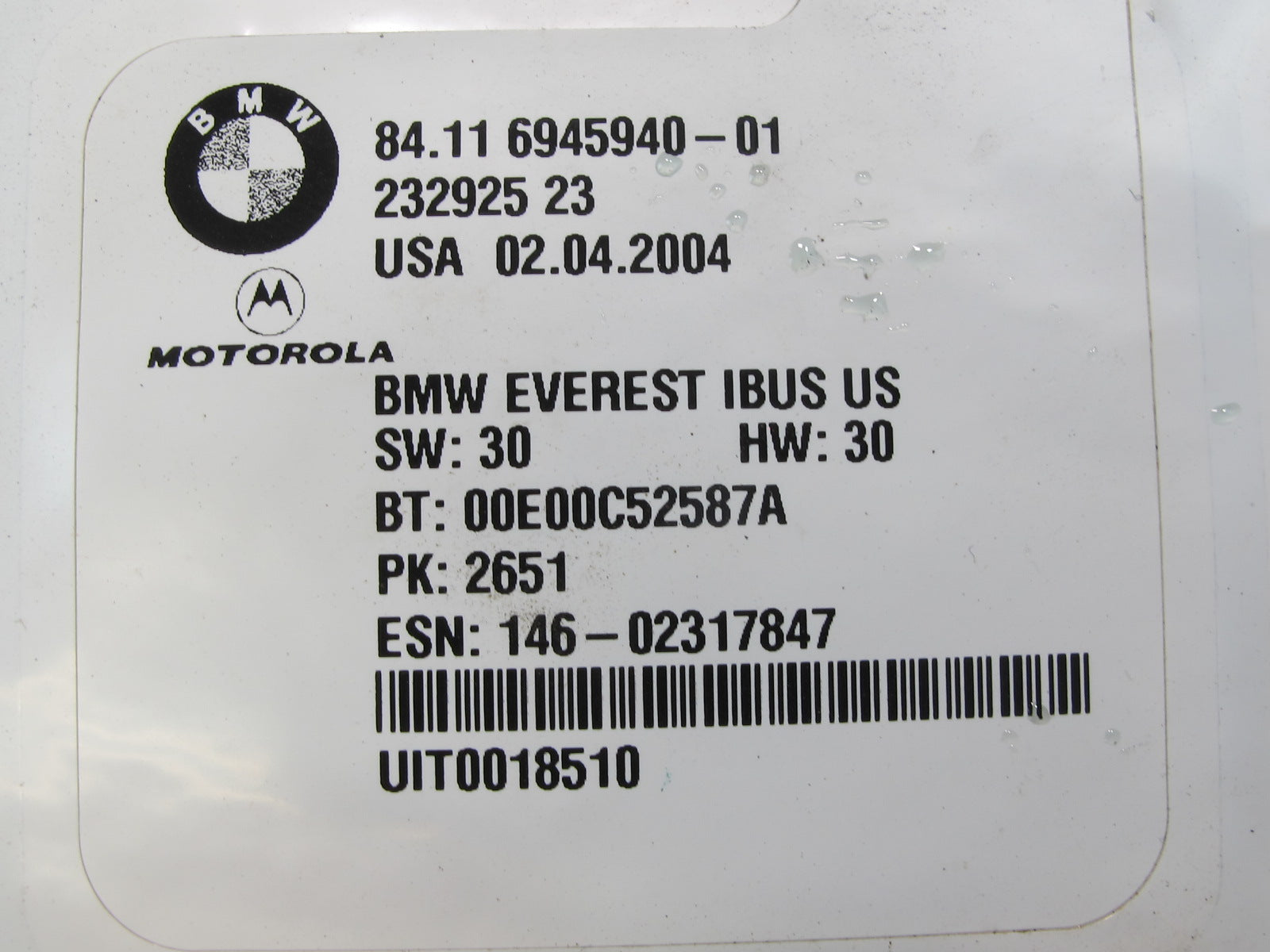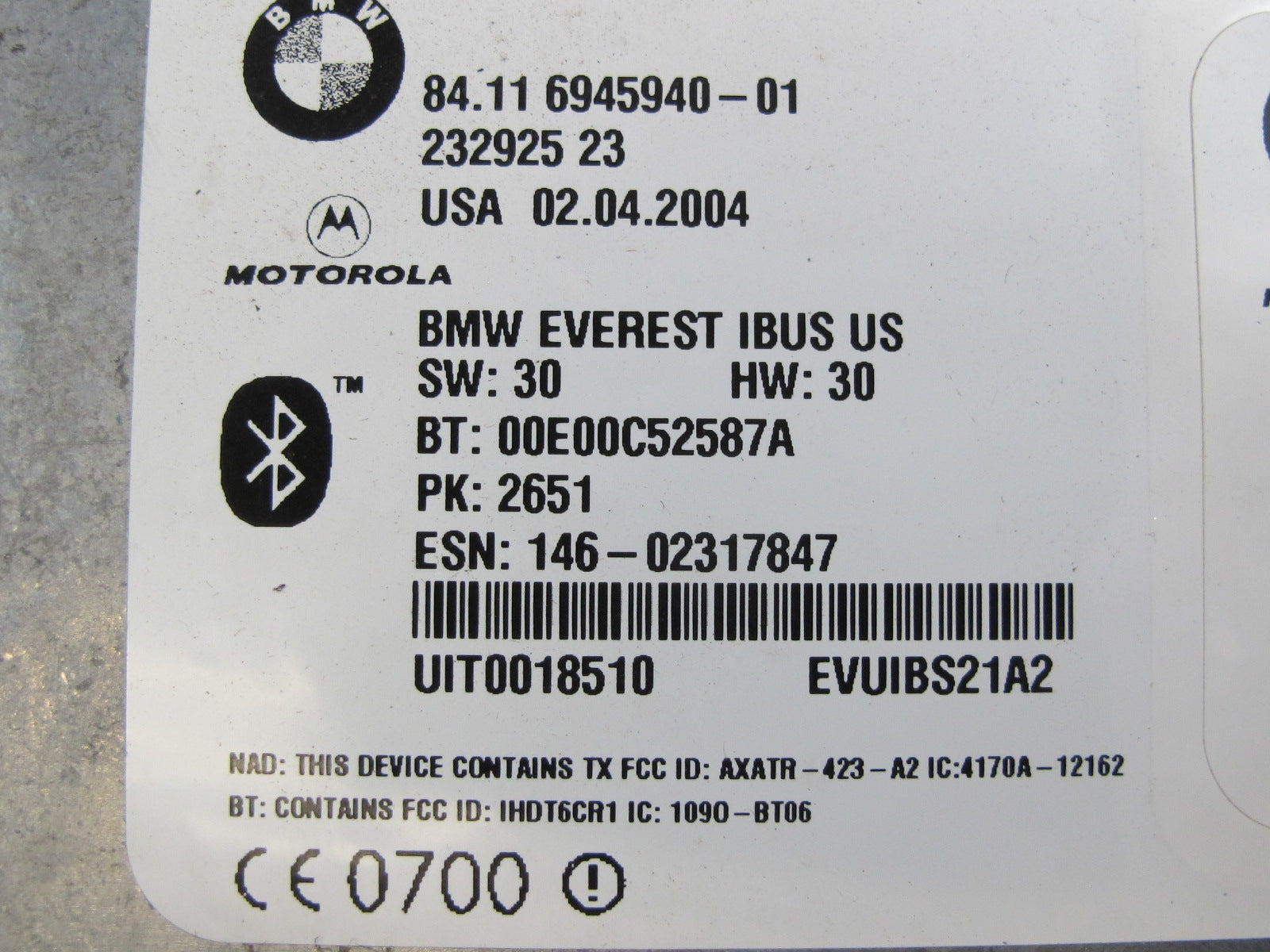 2004-2005 BMW E46 M3 3-SERIES Telematics Bluetooth Communication Control Module