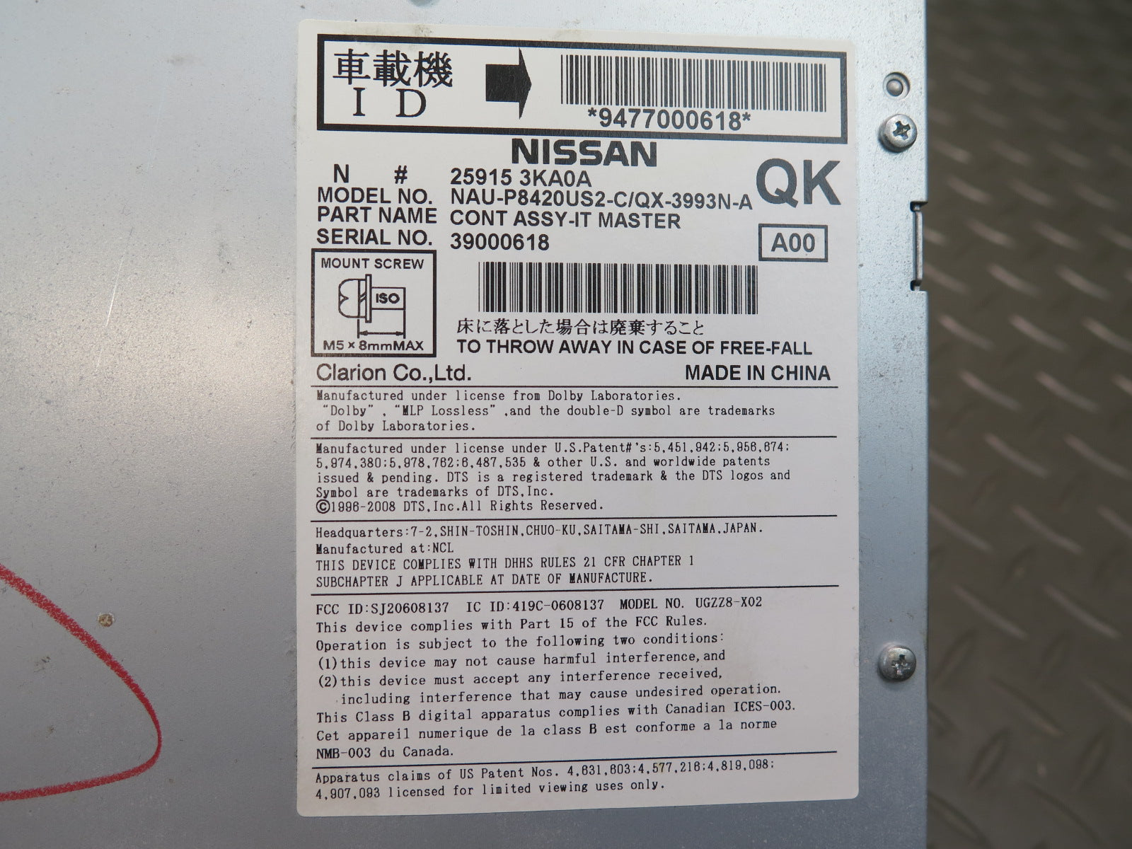 2014 Infiniti QX60 GPS Navi Radio CD Player Receiver Head Unit 25915-3KA0A