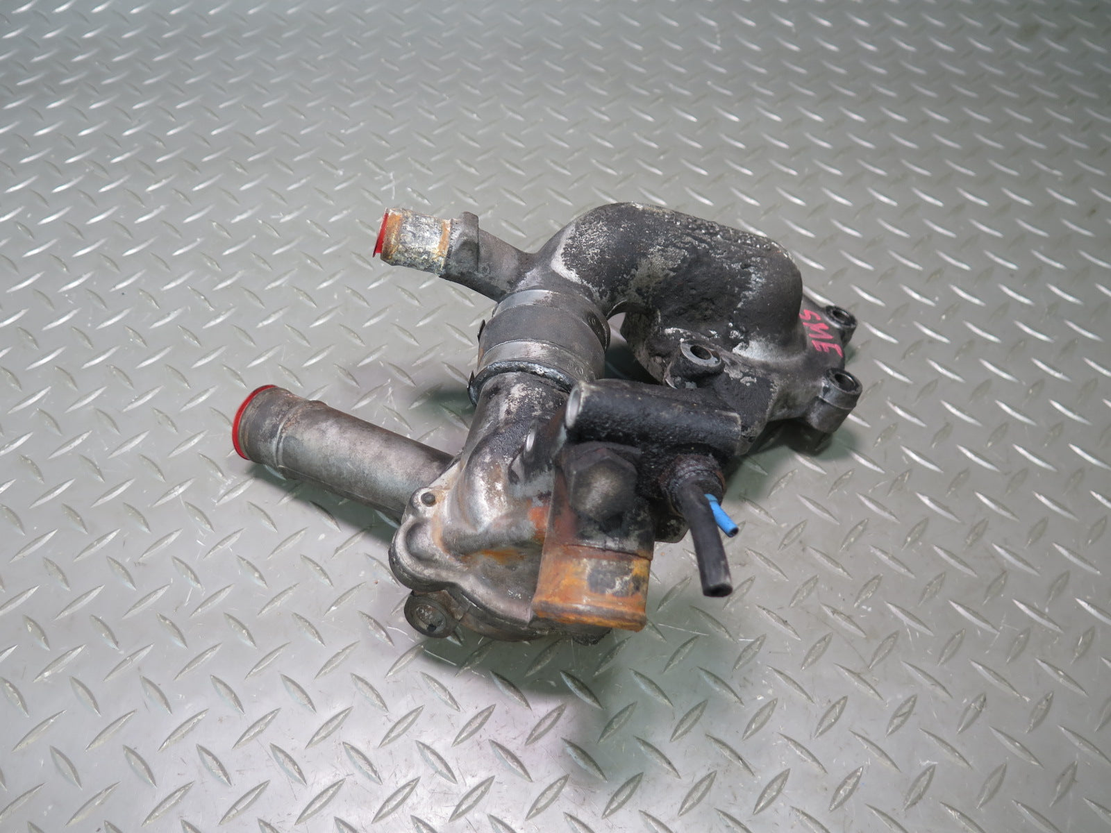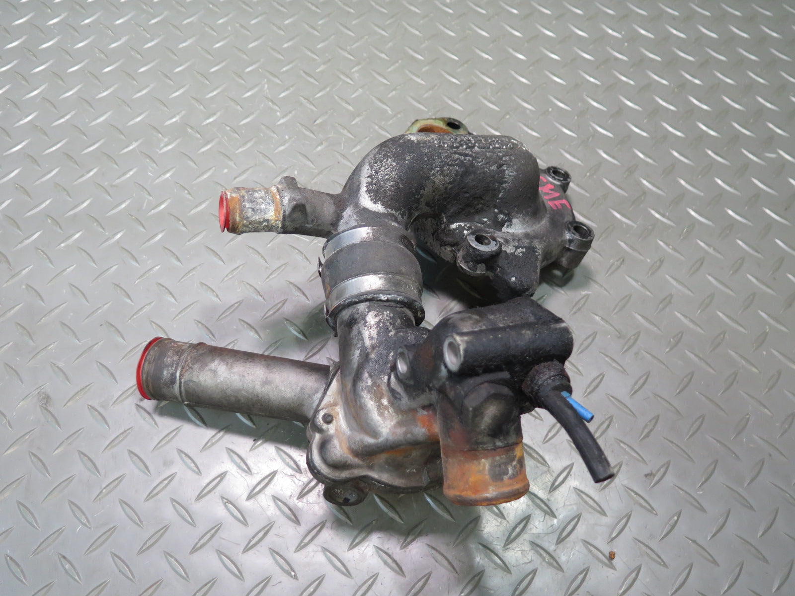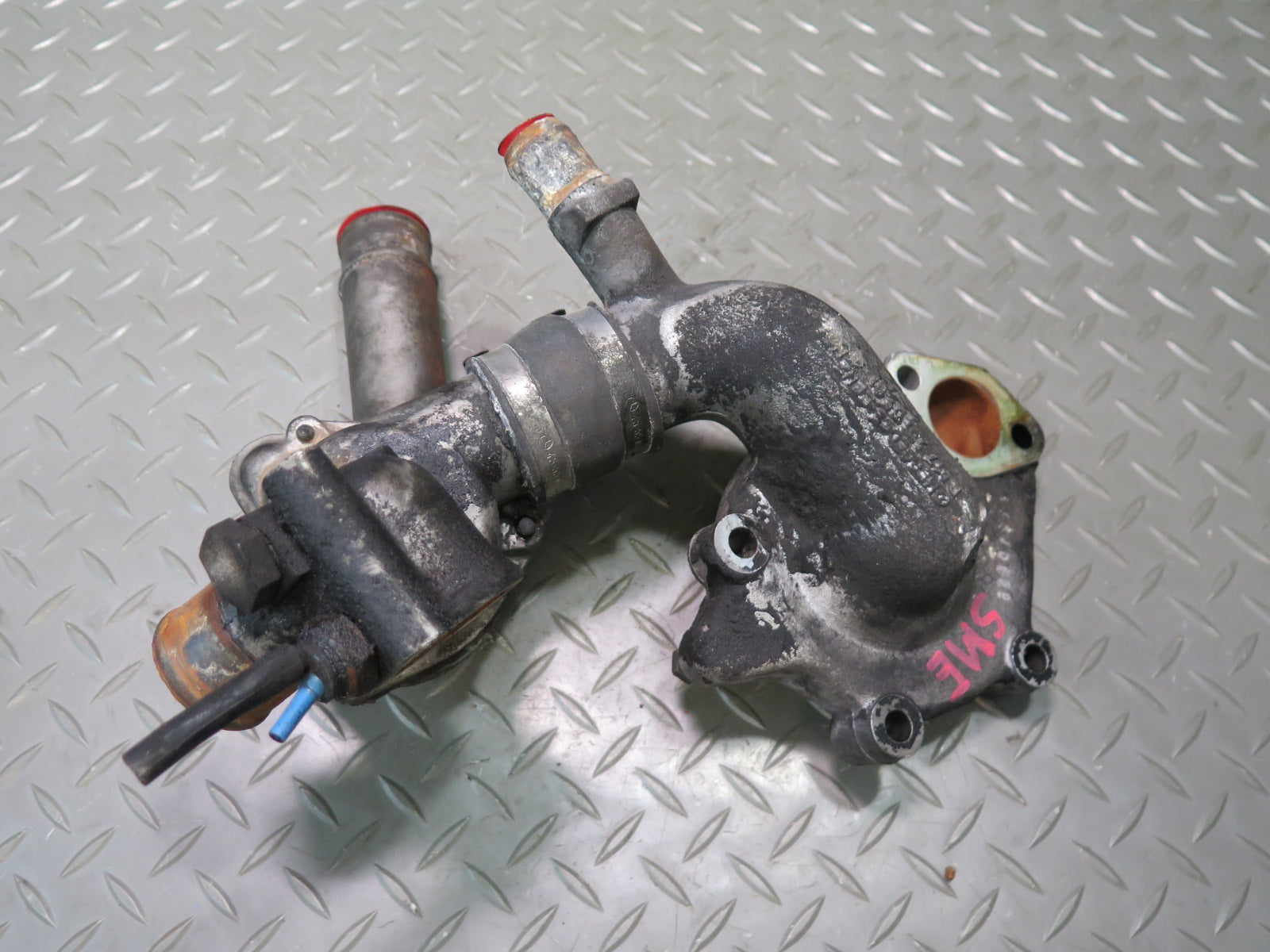 81-83 Mercedes W123 240D 616.912 Engine Thermostat & Water Pump Housing Assy OEM