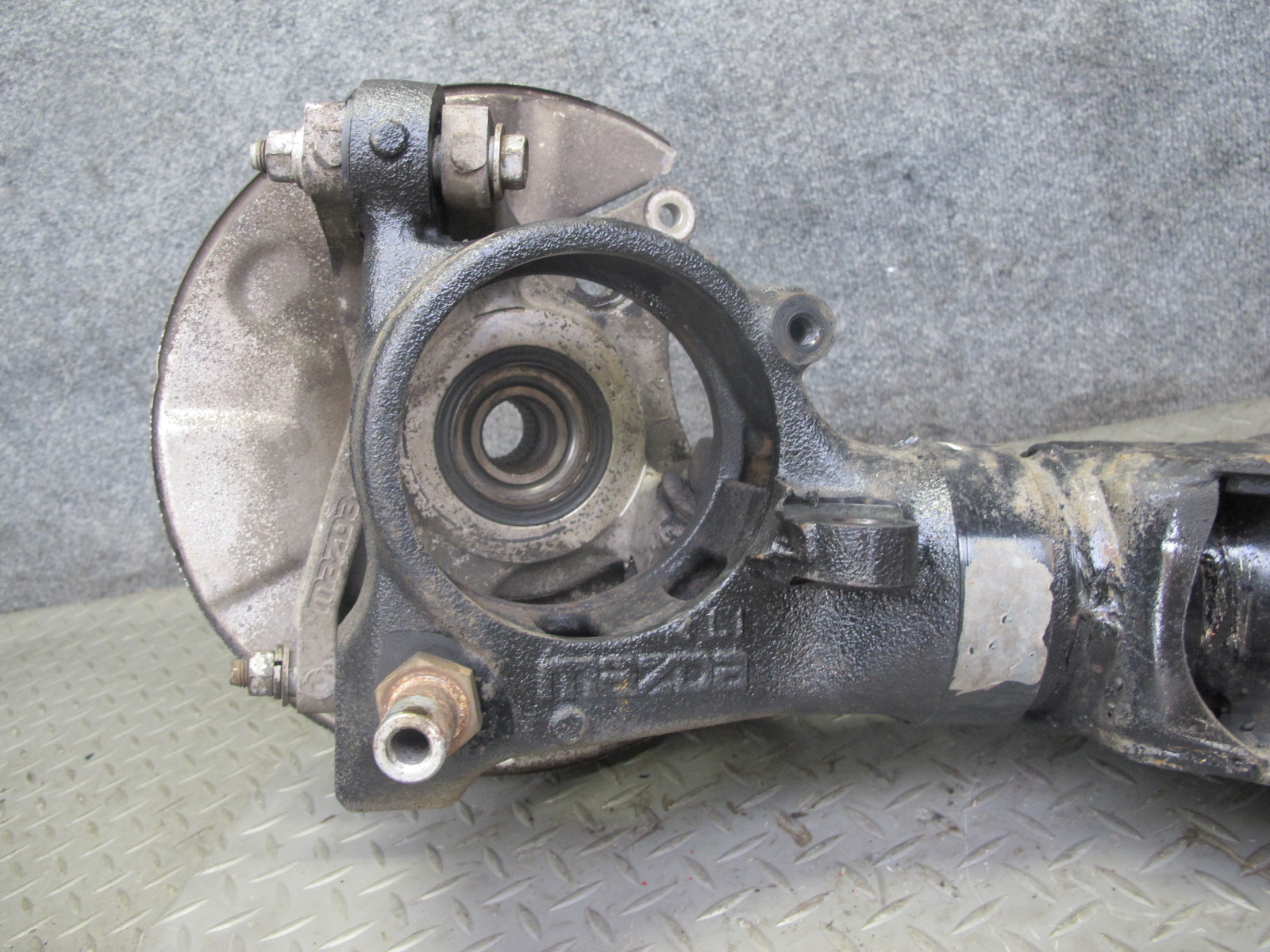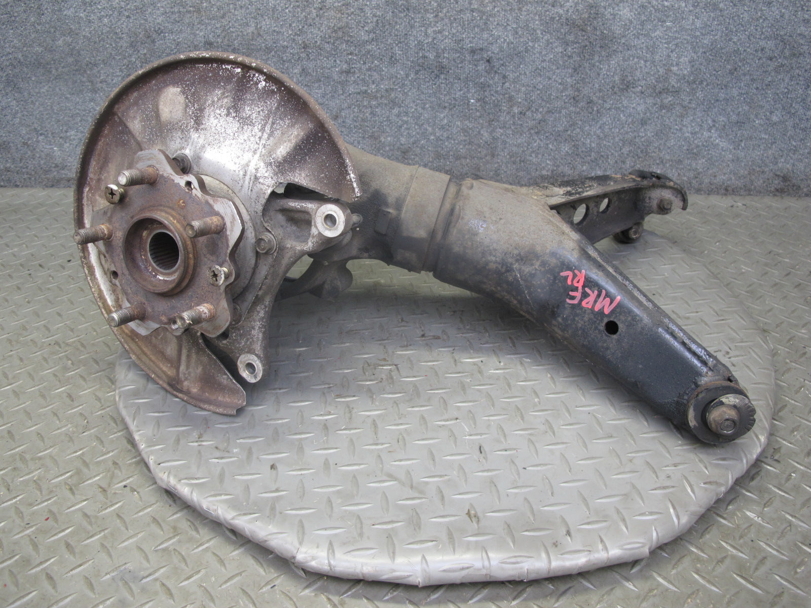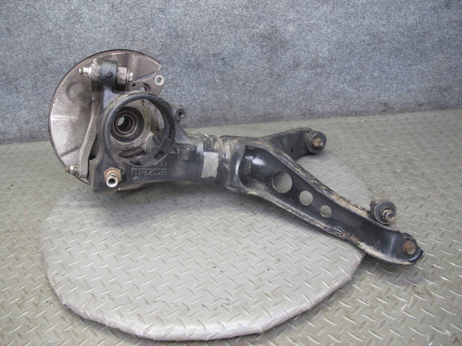 86-91 Mazda RX7 FC3S Rear Left Spindle Knuckle Wheel Hub w Trailing Arm OEM