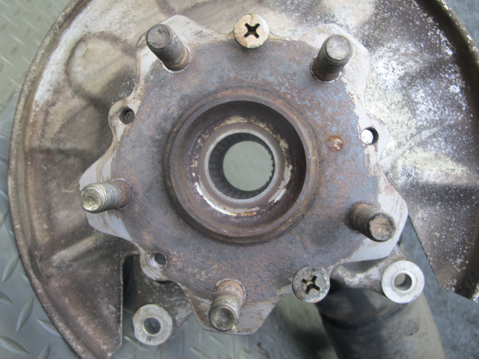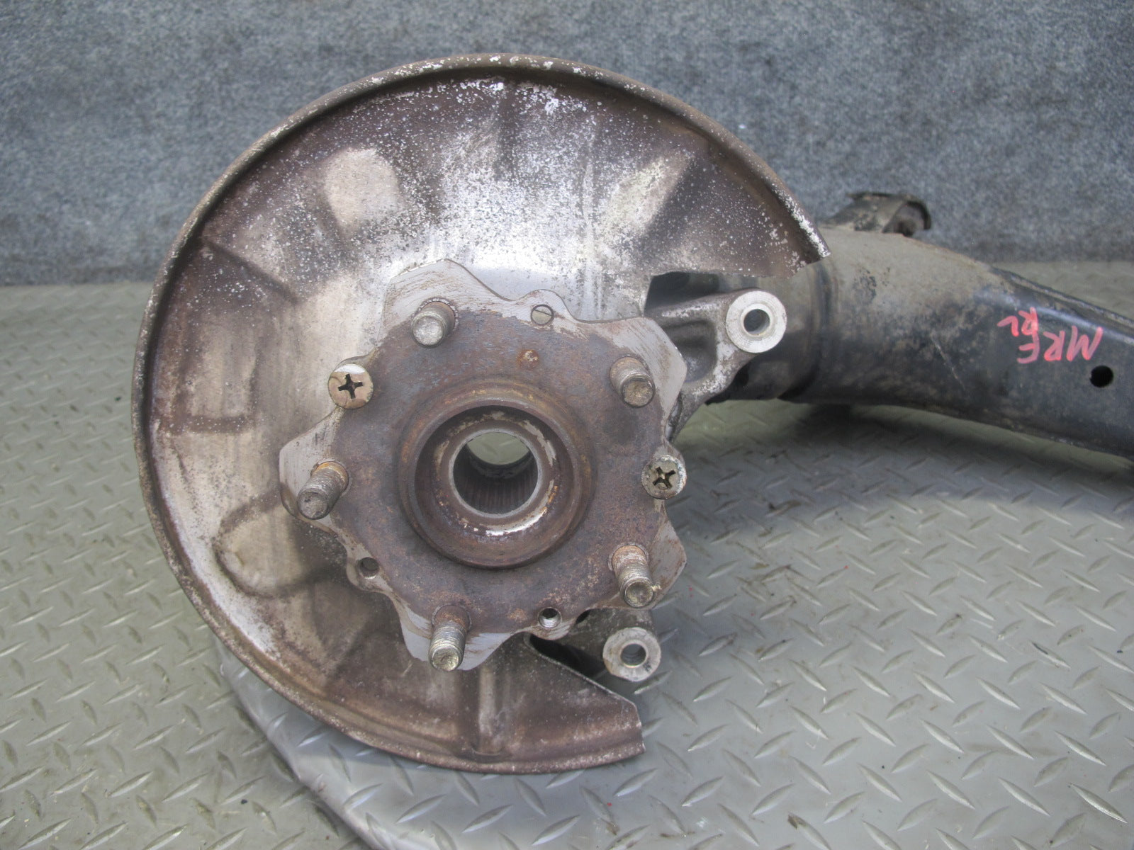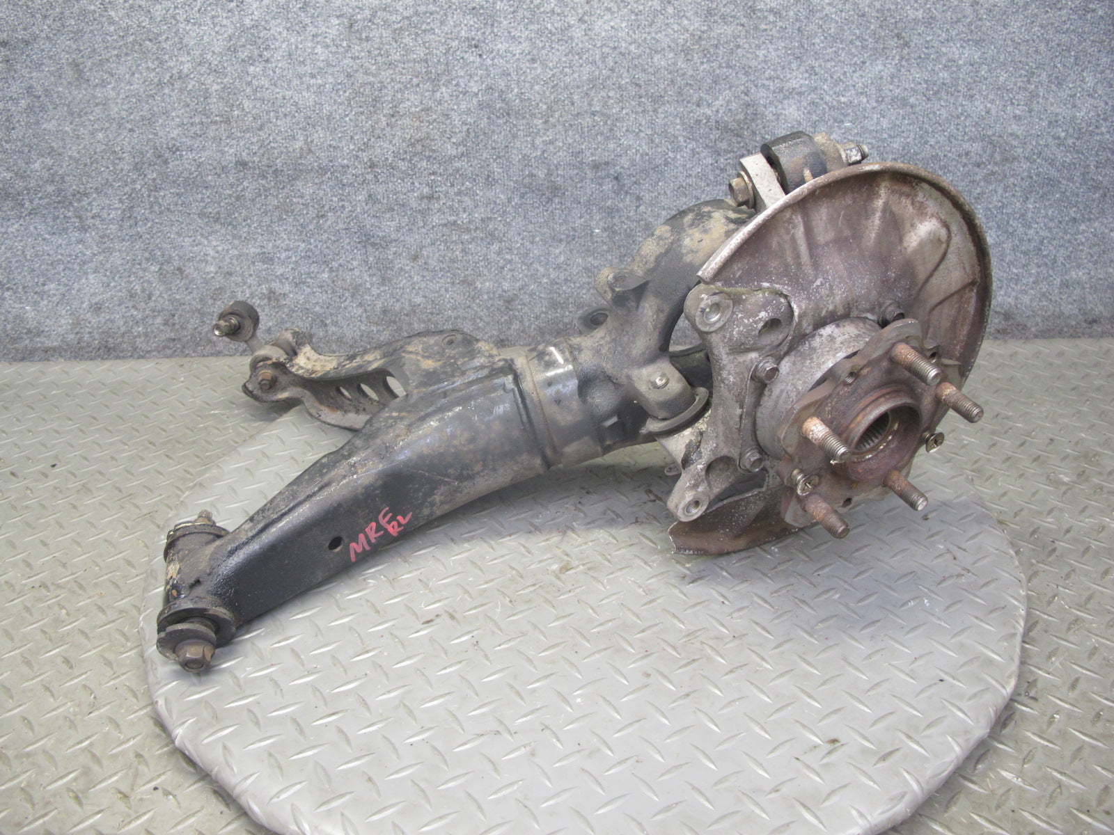 86-91 Mazda RX7 FC3S Rear Left Spindle Knuckle Wheel Hub w Trailing Arm OEM