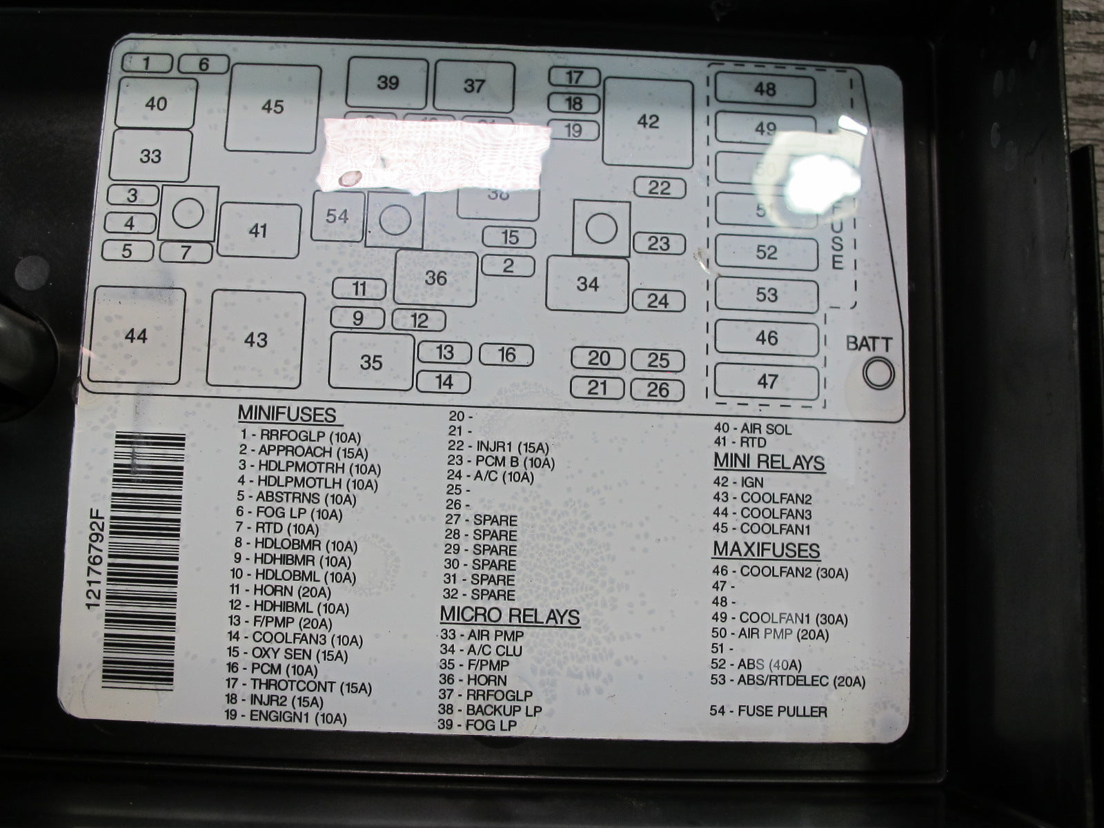 97-98 Chevrolet Corvette C5 Under Hood Engine Relay Fuse Box 12161017 OEM
