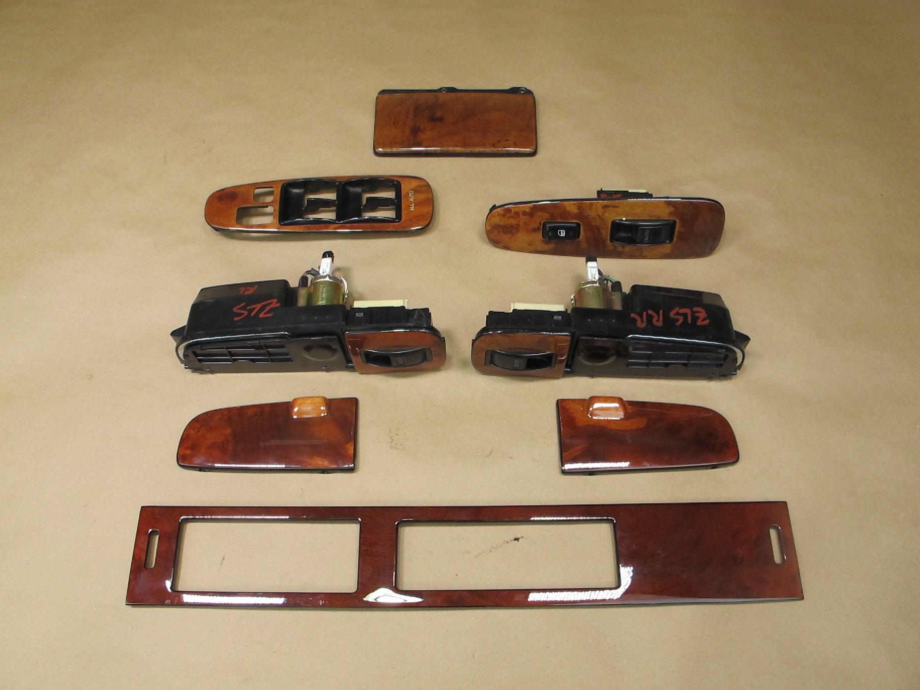 98-00 Lexus UCF20L LS400 8pcs Door Window Switch Woodgrain Trim Cover Set OEM