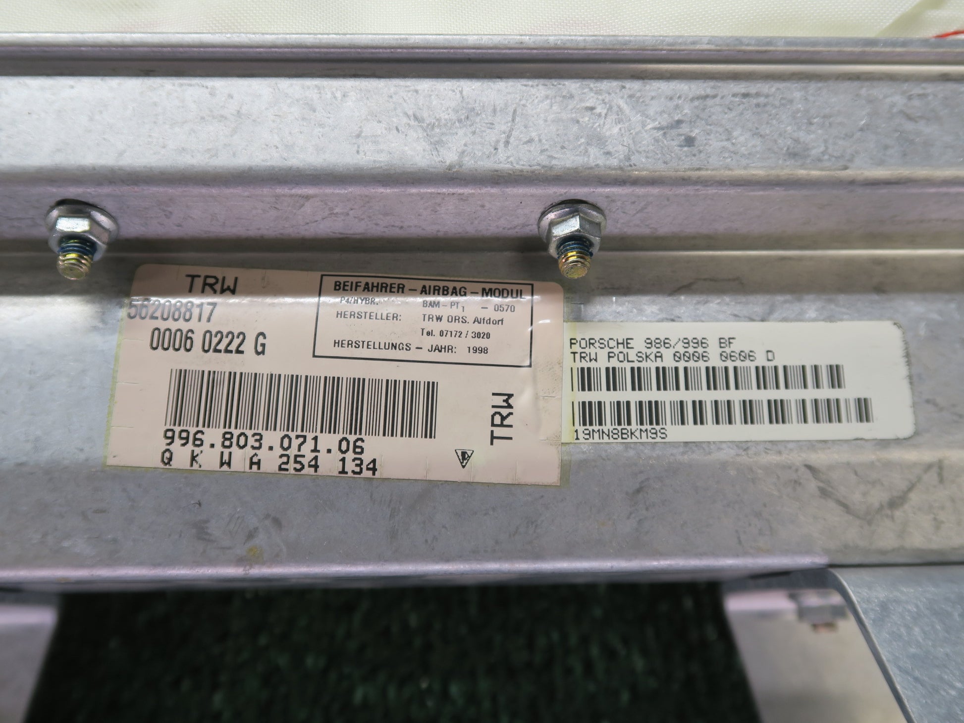 98-00 PORSCHE BOXSTER 986 FRONT RIGHT PASSENGER SIDE DASH SRS AIRBAG OEM